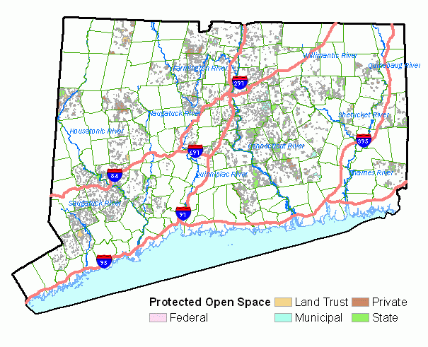 Protected open space represented as polygon features. (Source: State of Connecticut, Department of Environmental Protection)