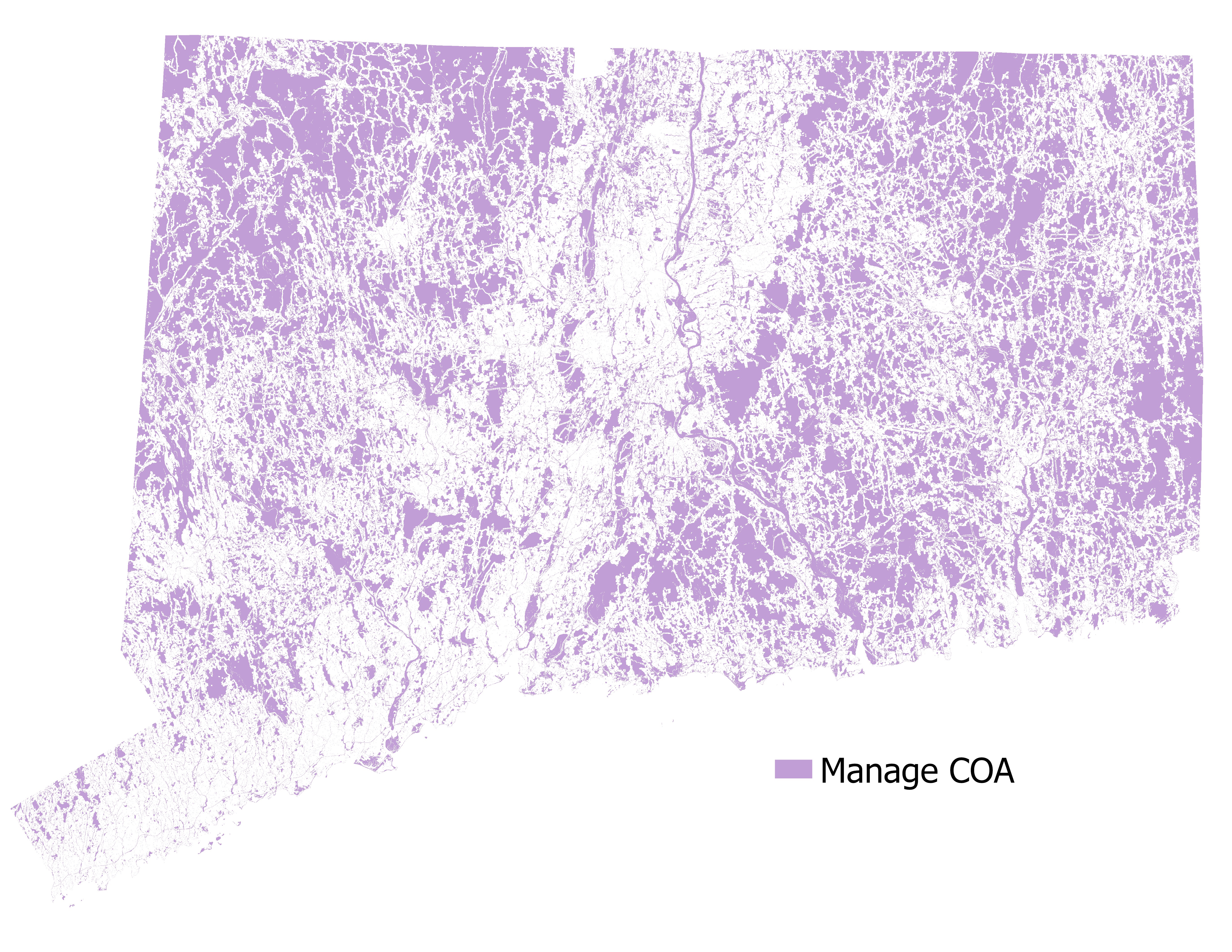 Description: Manage COAData included: The goal of the Manage COA is to maintain or enhance ecological conditions and habitats. To reflect this goal, key habitat maps were included within the Manage COA. Due to minimal overlap in key habitats, spatial prioritization software was not used. Instead, all the key habitats were included within one map to help partners achieve the goal of maintaining or enhancing existing key habitats. The key habitats included open upland, estuarine, palustrine, land water interface, lacustrine, and riverine. The key habitat maps were compiled from existing geospatial data including the NOAA 1 m Coastal Change Analysis Program Landcover Data, Connecticut Young Forest and Shrubland Habitat Map, USGS National Hydrography Dataset Plus, Connecticut Hydrography Set, and Connecticut and Vicinity Town Boundary Set. The 2015 Forest Fragmentation Map (core forest) was used instead of forested uplands to highlight areas of continuous forest cover, and Connecticut DEEP property or terrestrial and aquatic properties currently managed by CT DEEP were also included. View the full methods for all COAs in Appendix 4.6 in the 2025 CT State Wildlife Action Plan. Potential uses: Partners interested in managing key habitats may use this COA. This COA includes all key habitats, thus if partners are interested in managing specific habitat types or habitat-specific management actions, then refer to the key habitat maps. Recommended actions (example actions):Stewarding wild individualsUse exclusion devices to protect turtle nestsManage roost sites for bat populations affected by disease Maintain instream habitat features for cold-water fishConservation planningCreate updated and spatially explicit conservation plans for diadromous fish, vernal pool-dependent amphibians, and freshwater musselsMitigate human environmental impactReduce stormwater inputs and stabilize streambanks and shoreline vegetation in urbanized watershedsReduce recreational erosion, urban runoff, light and noise pollution, and physical disturbance of sensitive sitesRemove dams and barriers to fish passage where appropriateMinimize disturbance of spawning habitats for key SGCN fish speciesReintroduce or relocate individualsConduct species introduction/reintroductionManage plants, animals, fungi, or bacteriaUse brush-cutting and mowing that maintain early successional structureUse deer exclusion fencing to improve recruitment of rare forbs in heavily browsed habitatsManage non-living habitat componentsUse in-stream enhancement techniques, such as adding woody debris and stabilizing banks (critical for species like brook trout and slimy sculpin)Stewardship of captive individualsMaintain individuals in captivity for future recovery effortsComplementary or alternative conservation measuresImplement riparian buffer maintenance or flow protections via conservation agreementsBog turtle habitat on private farmland may be best maintained through informal agreements and technical assistance, rather than acquisition For questions about the layer, contact Katy Bischoff: kathryn.bischoff@uconn.edu